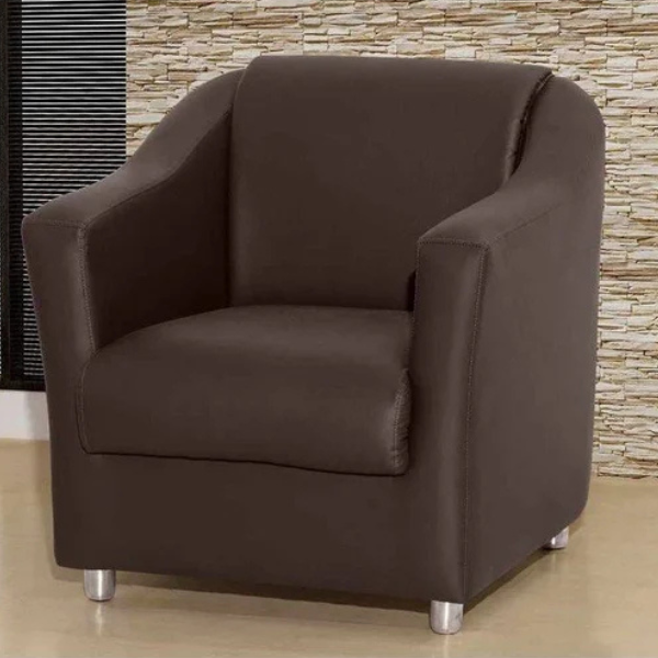 A Poltrona Bia combina conforto, estilo e praticidade. Revestida em courino marrom, é fácil de limpar e perfeita para salas, quartos ou recepções. Sua estrutura em madeira reforçada e espuma de qualidade garantem durabilidade e conforto. Os pés com acabamento em alumínio dão um toque moderno à peça.